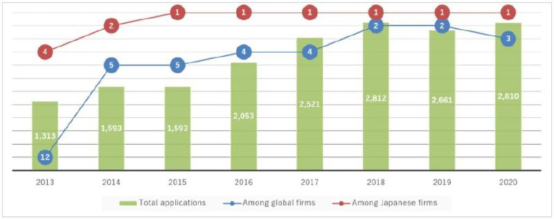 По итогам 2020 г. Mitsubishi Electric снова №1 в Японии по количеству патентных заявок согласно данным Всемирной Организации Интеллектуальной Собственности (ВОИС).